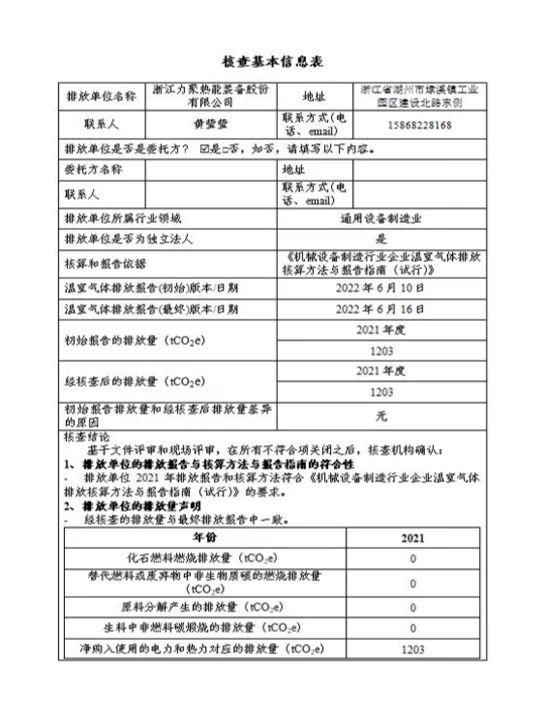 浙江5001拉斯維加斯熱能裝備股份有限公司2021年度溫室氣體排放核查報告